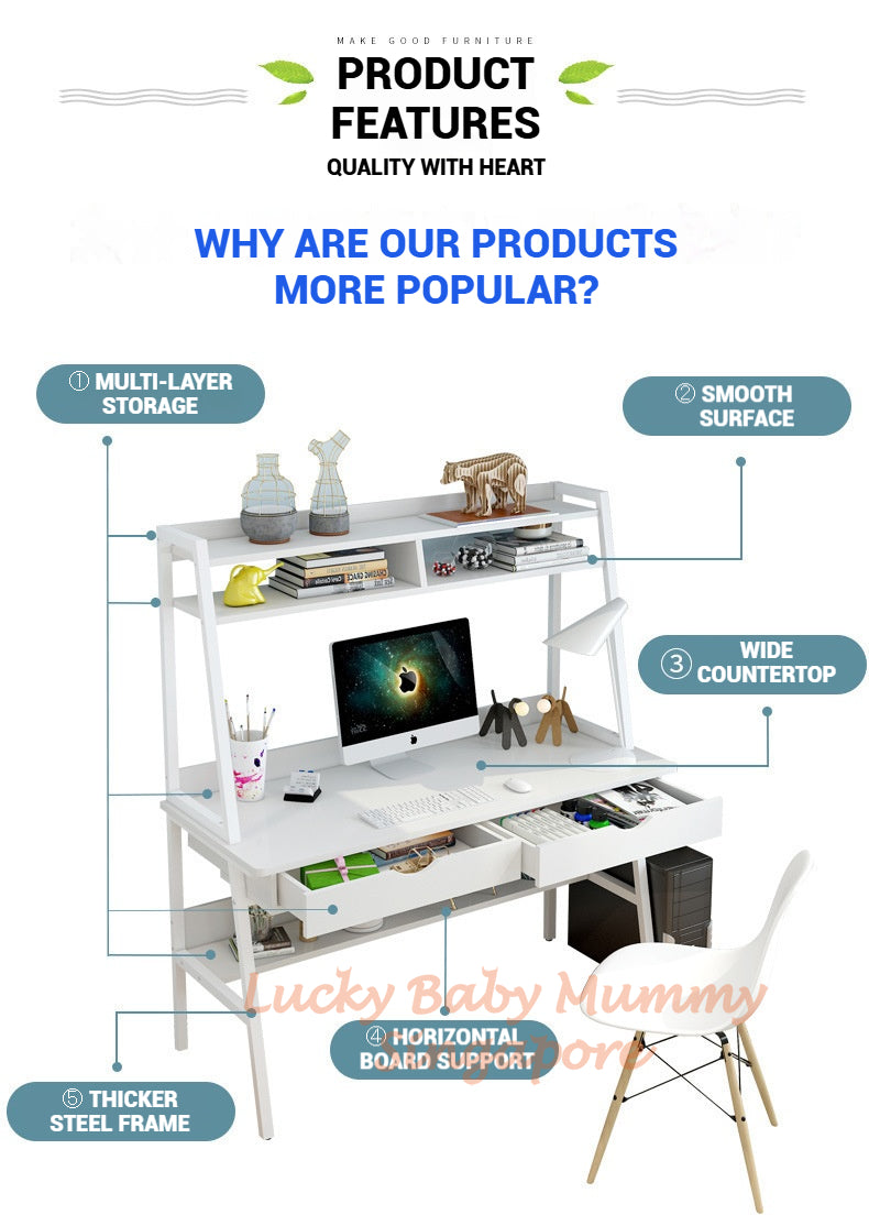 ✅ Multi-Layer Storage – bookshelf, drawer, and bottom shelf for maximum organization