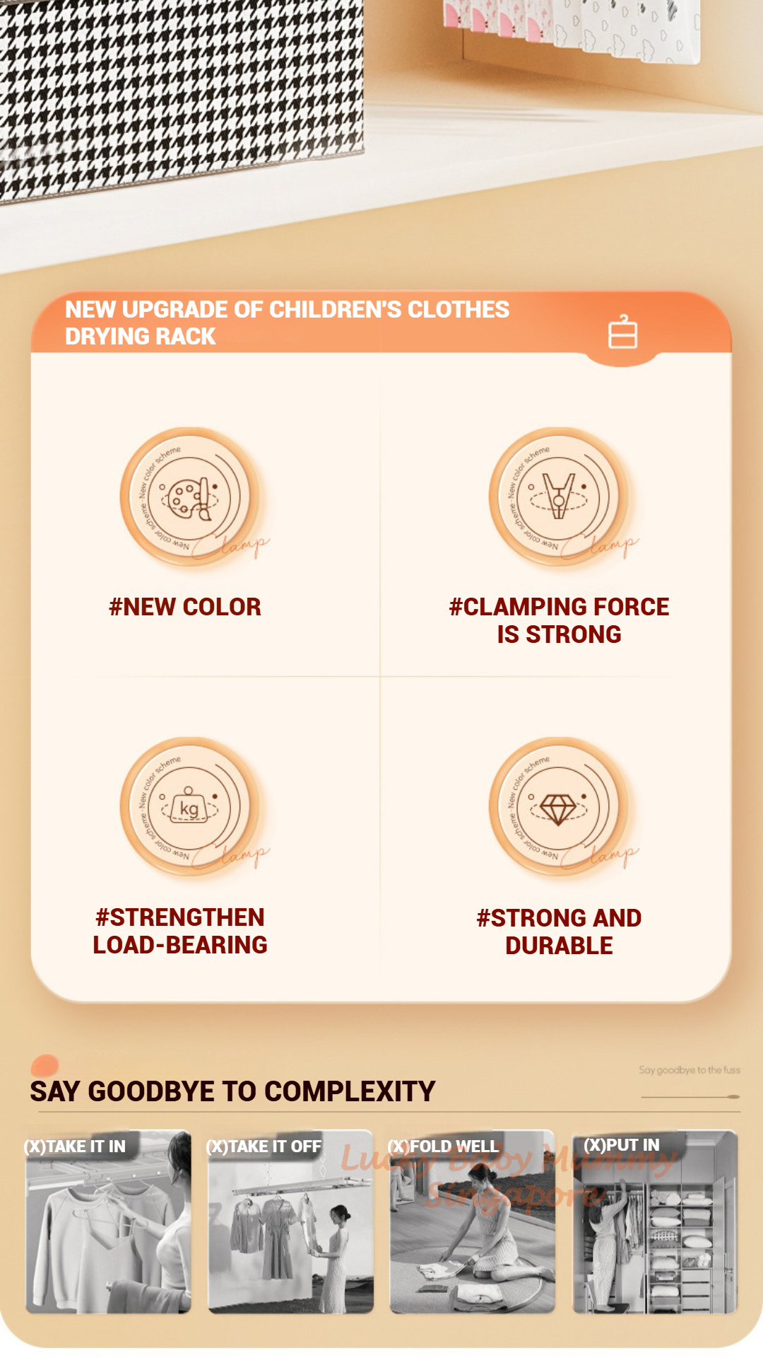 - No folding needed – hang & store directly after drying