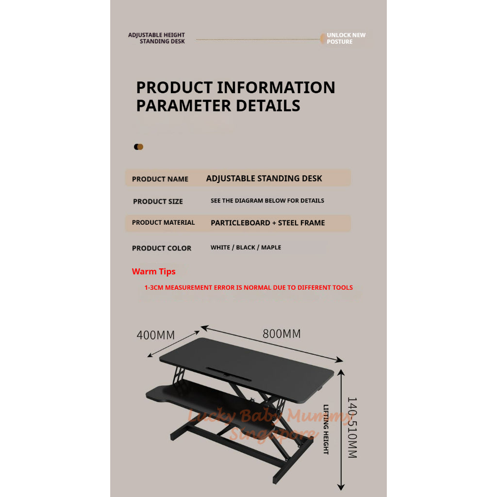 Size: 80cm (L) x 40cm (W) x Adjustable Height 14cm – 51cm