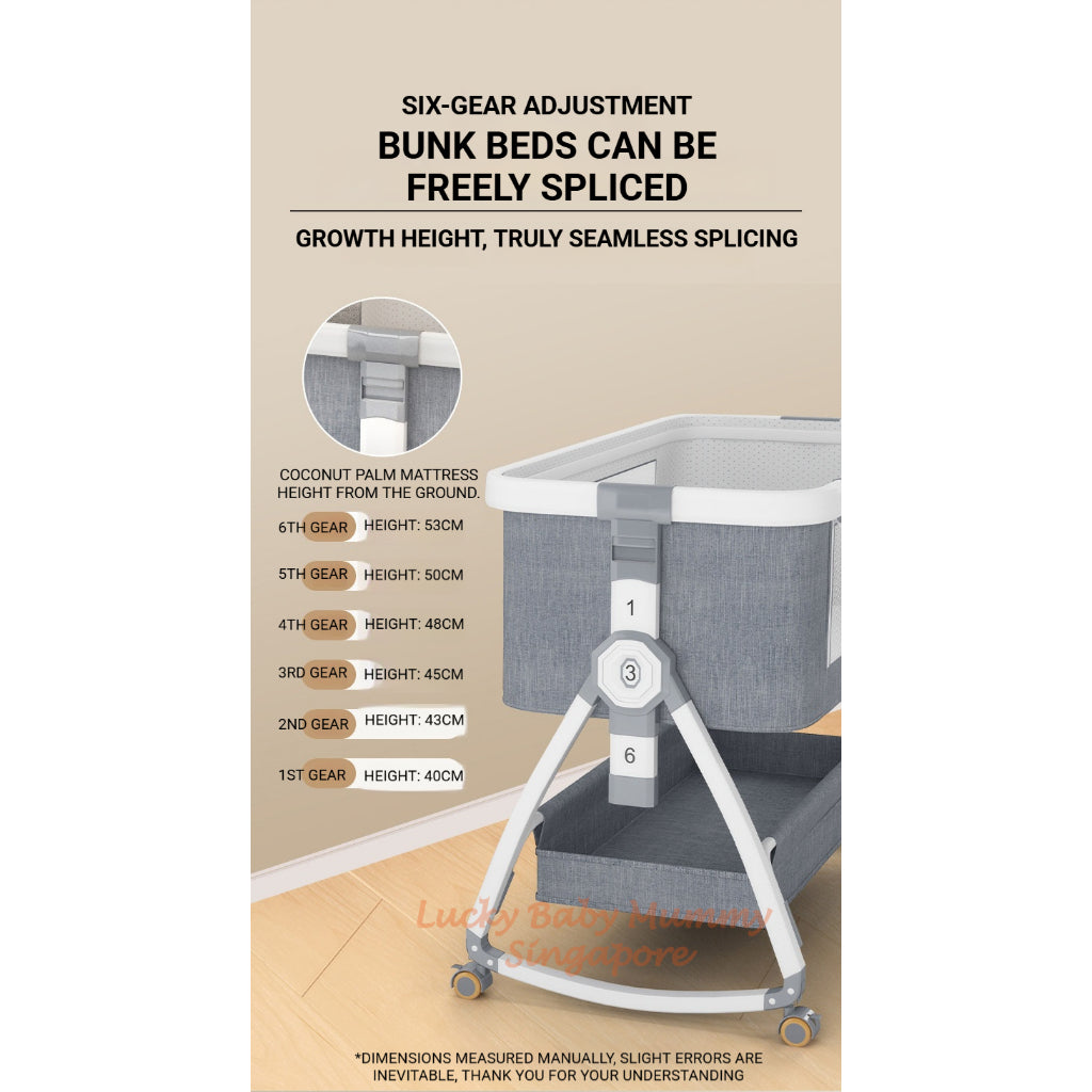 ✔ Multifunctional Use - Cradle, Rocking Bed, Co-sleeping Cot, Changing Table, and Mosquito Net Mode—all in one.